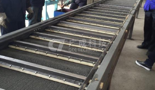 設(shè)備由驅(qū)動(dòng)裝置、主動(dòng)輪裝置、被動(dòng)輪裝置、張緊裝置、清掃裝置、膠帶、托輥等組成