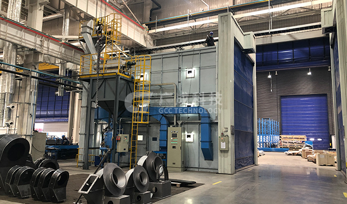 配套雙缸四槍噴砂系統(tǒng)、分段回收系統(tǒng)、地坑回收系統(tǒng)、二級(jí)除塵系統(tǒng)、除濕系統(tǒng)、新風(fēng)過濾系統(tǒng)、廢氣處理系統(tǒng)和中央集控系統(tǒng)