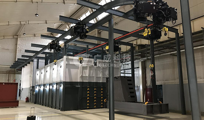 浸漆烘干系統(tǒng)配套浸漆槽、加熱系統(tǒng)、烘干房、有機(jī)廢氣處理系統(tǒng)、電動(dòng)平車、在線監(jiān)測系統(tǒng)等